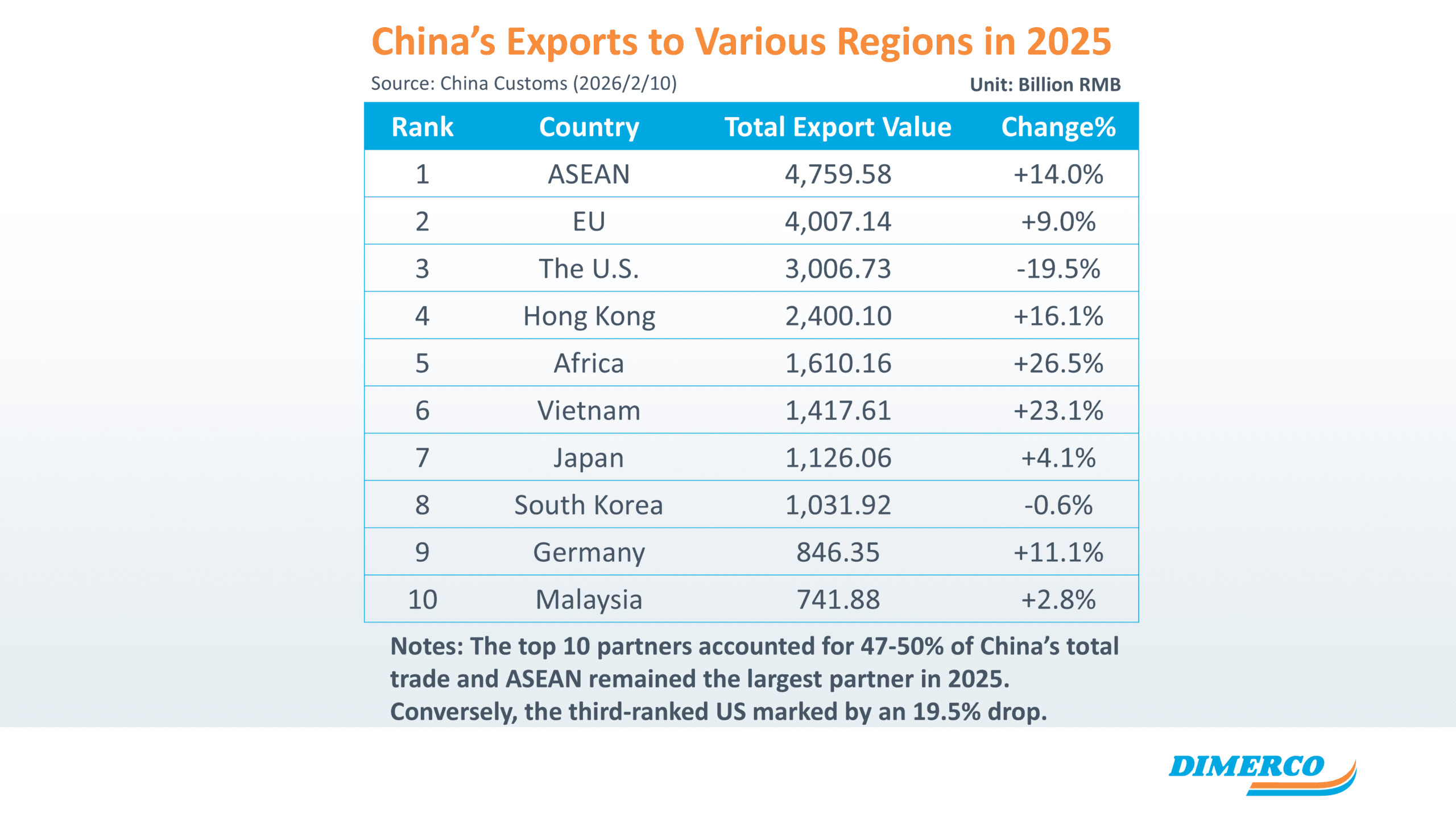 China’s exports to the U.S. declined by roughly 19.5% in 2025. Over the same period, exports to ASEAN increased by 14%, exports to Europe rose by about 9%, and exports to Africa grew more than 25%.